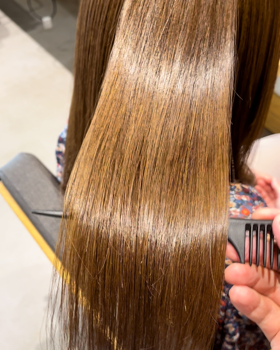 毎回ご来店の時、ツヤツヤでまとまりの良さにビックリしております。お客様ご自身も「日頃のお手入れがとても楽になった」と喜んでいただいており僕も嬉しく思ってます。